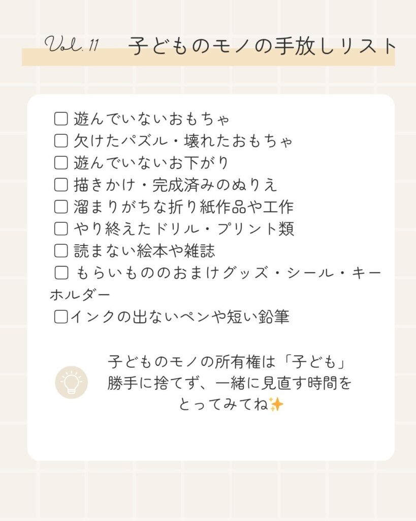 そんなママのために、場所別に少しずつ手放して整理できるリストを作りました。