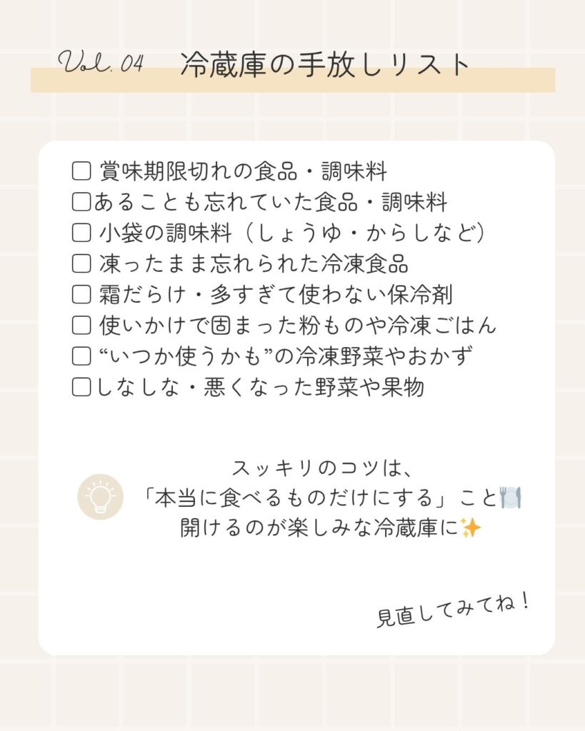 「気になって買ったけど全然使わない調味料」「得体の知れない冷凍したもの」が残ってることも。 開けるたびにモヤッとするなら、見直しチャンス!