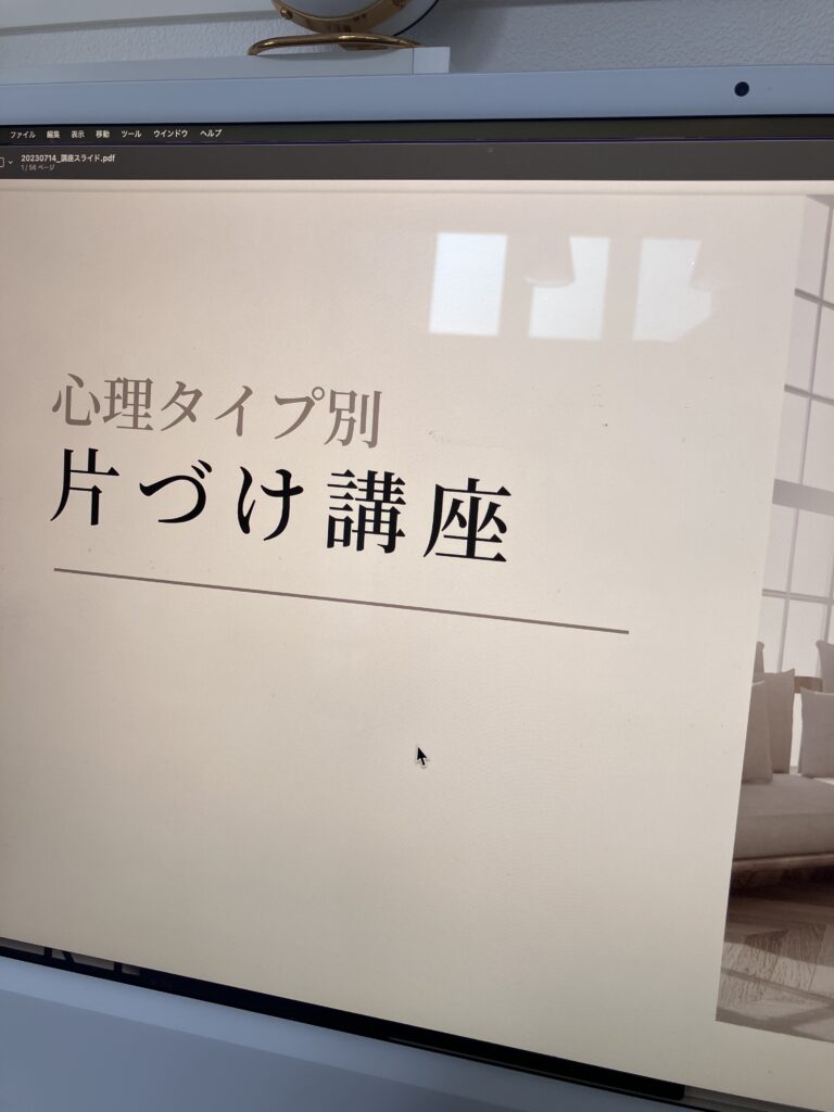 この講座は、「片づけたいけれど、なかなかうまくいかない」「家族と片づけのことで喧嘩しちゃう」というお悩みを解消することを目的に、心理タイプを切り口にした片付けを学んでいただくもの。